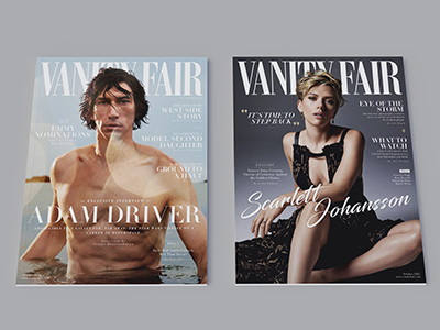 The mian covers for this project features Vanity Fair, but I included GQ and Men's Health for variety and to experiment with different layout, typography, and imagery(Made in Photoshop and Indesign)