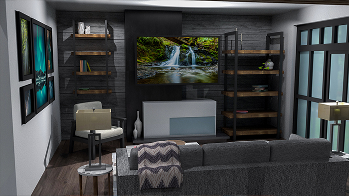 These images feature multiple angles of renders of a living room and kitchen I built in MAYA. To put this room together, I used different techniques within the program to build each asset by and and apply texture map to create a full rendered environment.