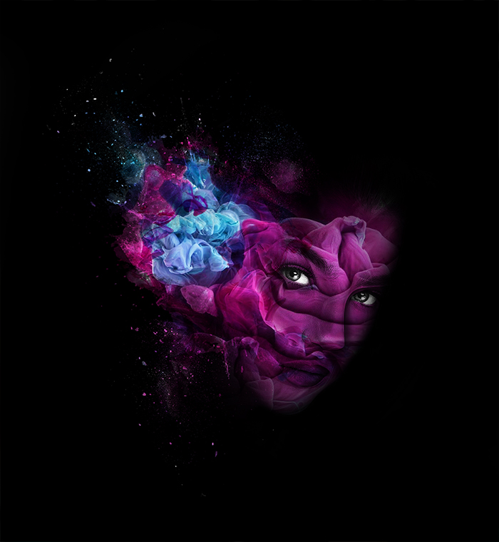 This piece uses a combination of a womans face and other assets to create this abstract portrait. (Made in Photoshop)